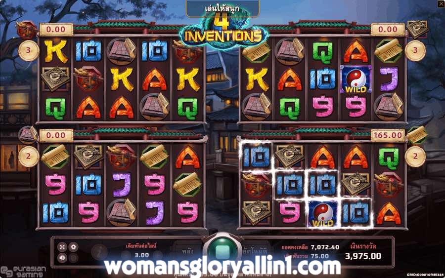 The Four Invention terinspirasi dari empat penemuan besar peradaban Tiongkok kuno: kertas, kompas, bubuk mesiu, dan percetakan. Setiap simbol dalam permainan ini dirancang untuk mencerminkan salah satu penemuan tersebut, memberikan nuansa edukatif sekaligus hiburan yang menyenangkan. Selain visual yang memukau, permainan ini juga menawarkan animasi halus dan efek suara yang meningkatkan pengalaman bermain, sehingga pemain merasa seolah berada di tengah sejarah peradaban Tiongkok.